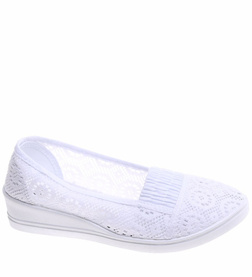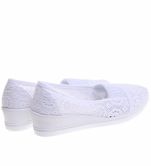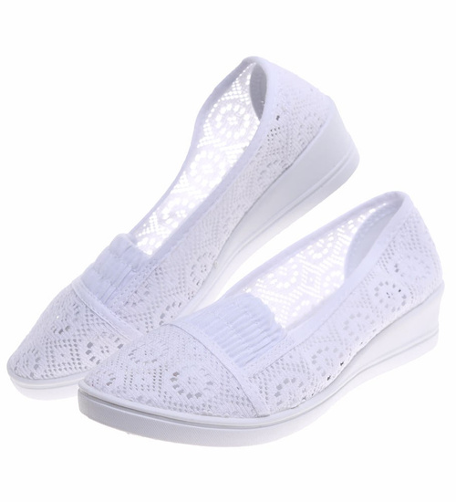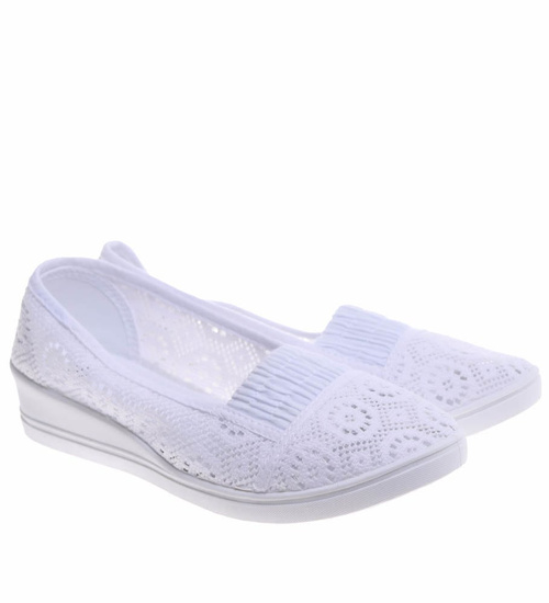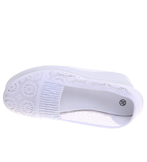 Białe koronkowe tenisówki na niskim koturnie /E5-3 16475 T206/