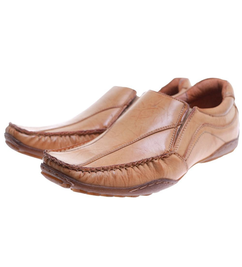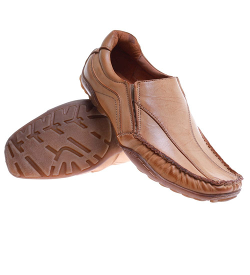 • Beżowe wsuwane półbuty męskie w stylu vintage – eleganckie i uniwersalne obuwie, które świetnie sprawdzi się w różnorodnych stylizacjach, zarówno codziennych, jak i bardziej casualowych.