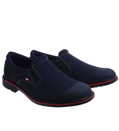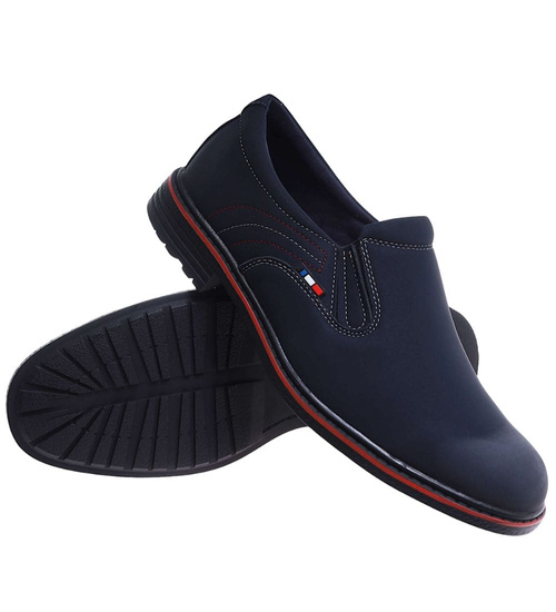Granatowe męskie półbuty mokasyny /D1-1 17598 T446/