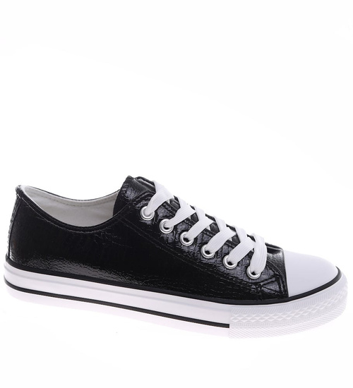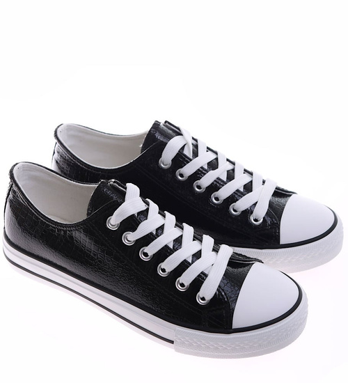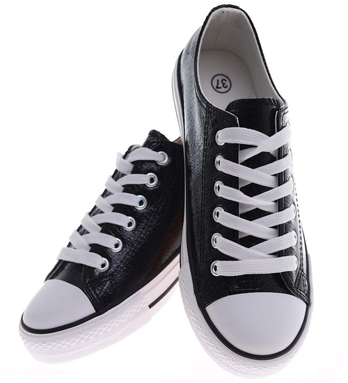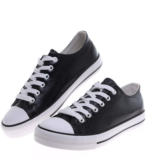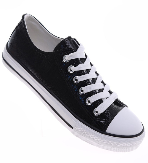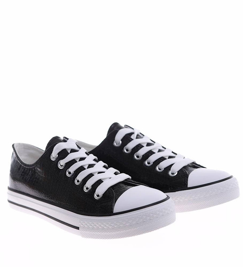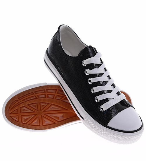 Czarne wiązane damskie trampki /D6-3 16403 G168/