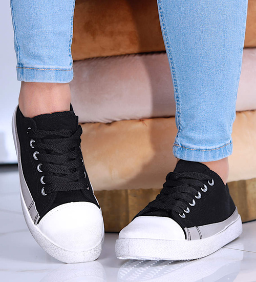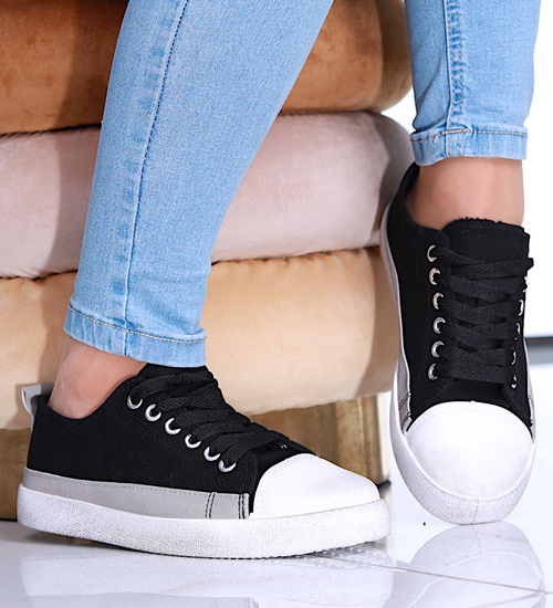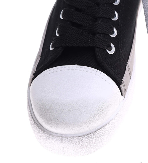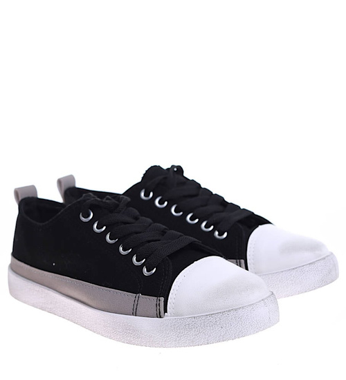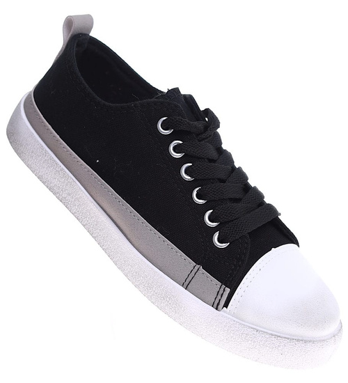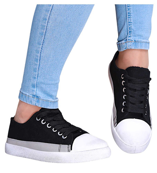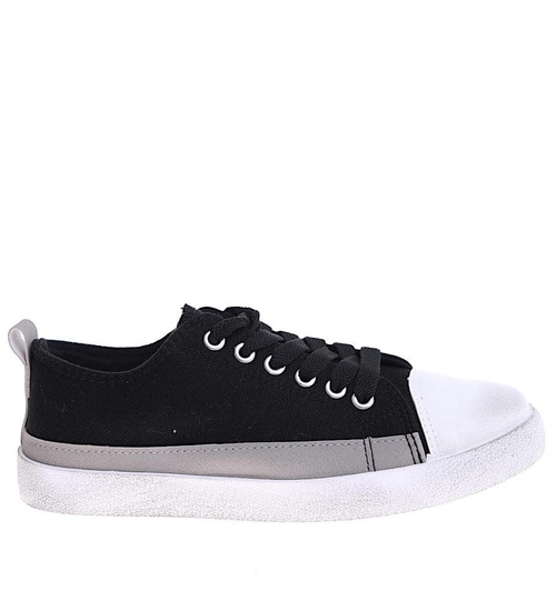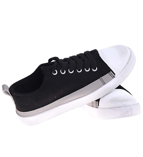 Trampki sznurowane czarne materiałowe buty damskie /E10-2 16175 T190/