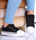 Stylowe i praktyczne damskie trampki, które łączą modę z komfortem na każdy dzień. Wykonane z miękkiego, przyjemnego w dotyku materiału w ponadczasowym, czarnym kolorze, stanowią doskonałą podstawę każdej casualowej stylizacji.