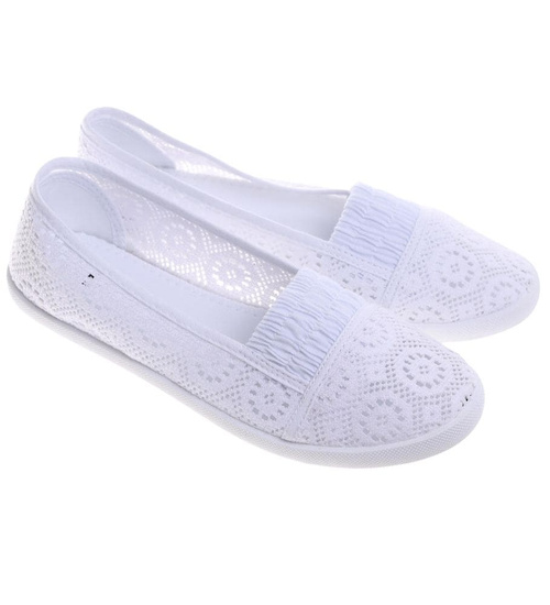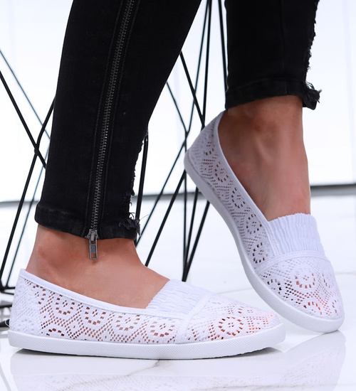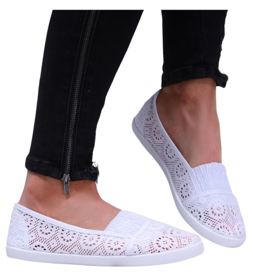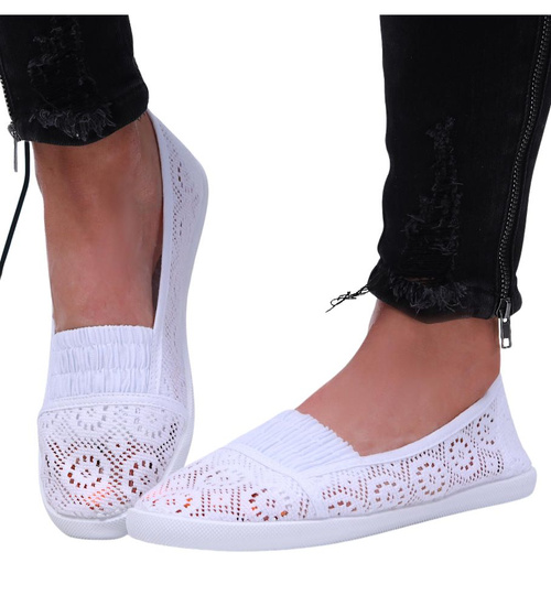 Białe ażurowe tenisówki damskie /B2-2 16473 S293/