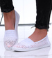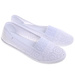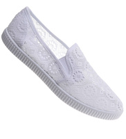 - Buty wykonane z miękkiego, koronkowego materiału w klasycznym białym kolorze, łączą w sobie kobiecy styl i praktyczność.