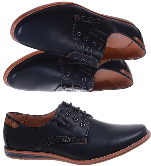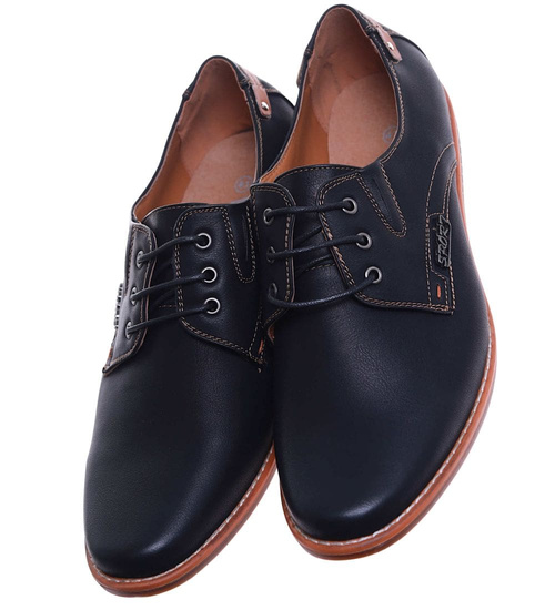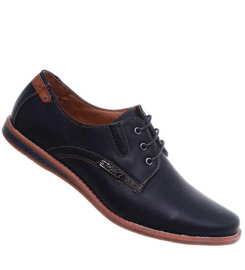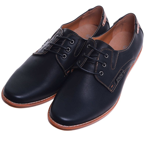 Czarne sznurowane półbuty męskie /C1-1+h2 10260 S386/