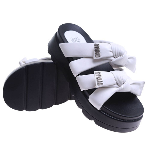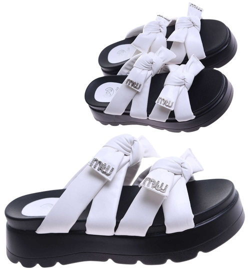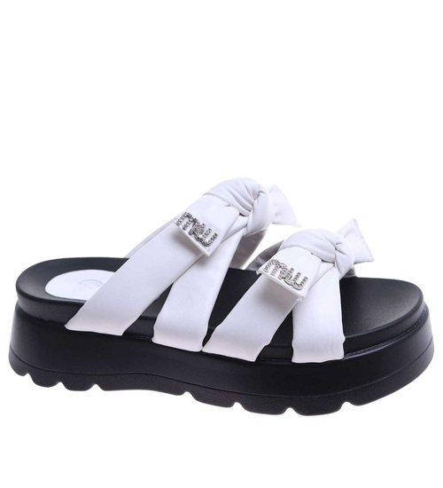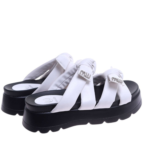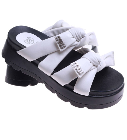 Białe klapki damskie na platformie /C7-3 17606 T589/