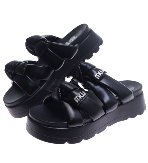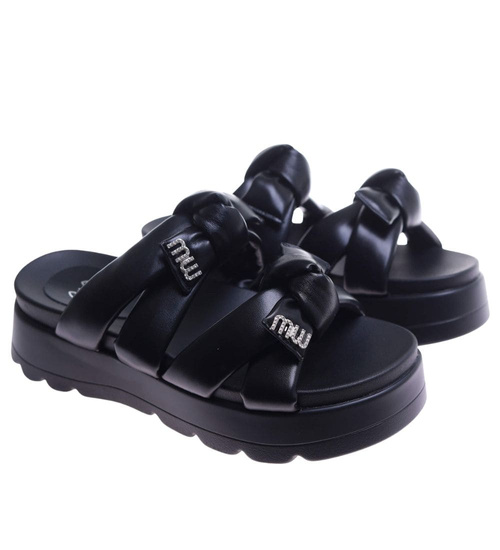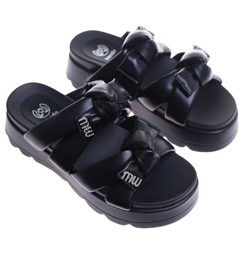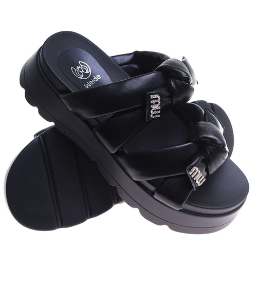 Czarne klapki damskie na platformie /D9-2 17605 T589/