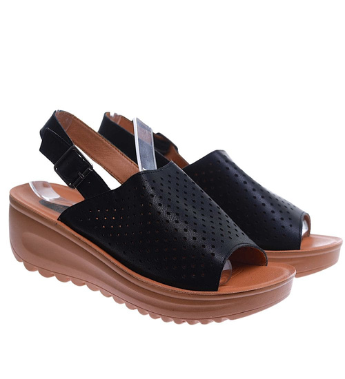 Czarne damskie sandały na platformie /C7-2 17609 T233/