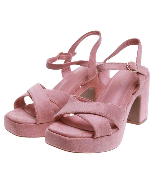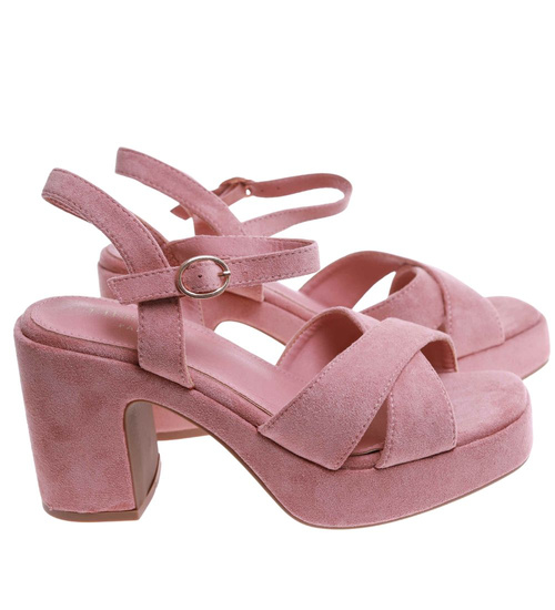 Podkreśl swój letni look stylowymi sandałami w najmodniejszym kolorze sezonu! To różowe sandały damskie wykonane zostały z miękkiego, zamszowego materiału, który nadaje im eleganckiego charakteru i zapewnia komfort noszenia.