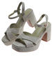 Zielone pastelowe sandały damskie z zamszowego materiału na słupku i platformie