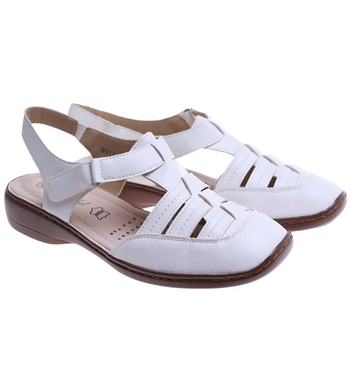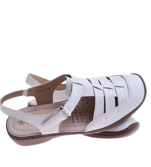 Białe damskie sandały na rzepy /G5-2 17615 T233/