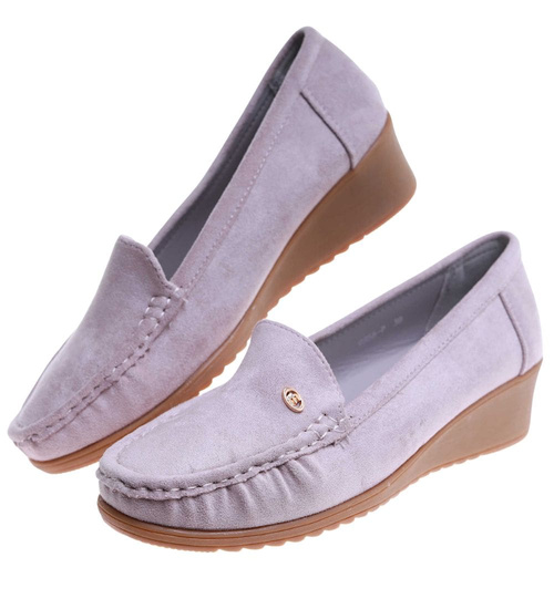 Szaro fioletowe czółenka na niskim koturnie /F7-3 17665 W289/