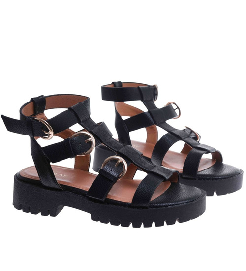 Czarne damskie sandały rzymianki /B6-1 17682 T335/