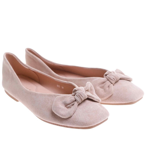 Beżowe baleriny damskie z kokardą – komfort i styl na co dzień