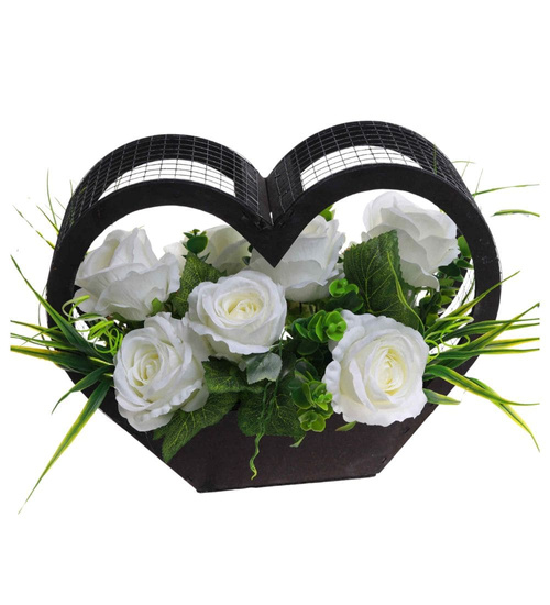 Kompozycja kwiatowa- białe róże w dużym czarnym sercu /Komp108 P424/