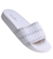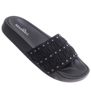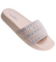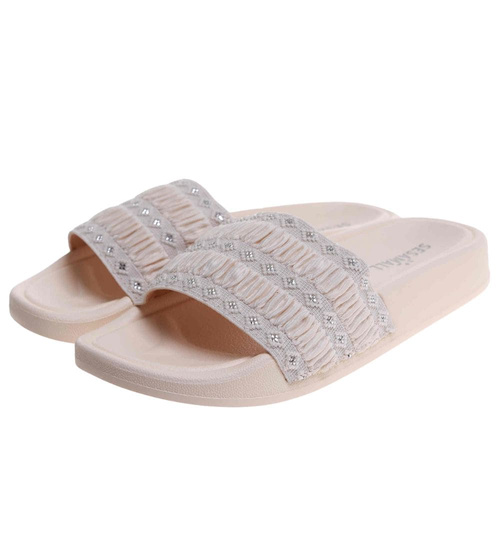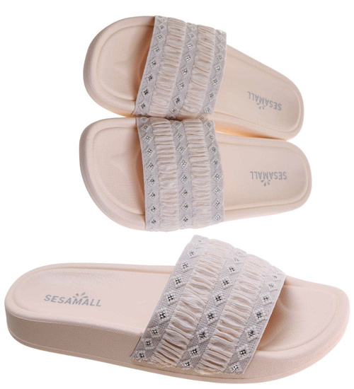 Beżowe klapki damskie z cyrkoniami – wygodne i uniwersalne na lato