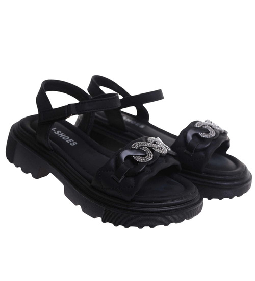 Czarne dziewczęce sandały z cyrkoniami /B5-2 17628 T296/