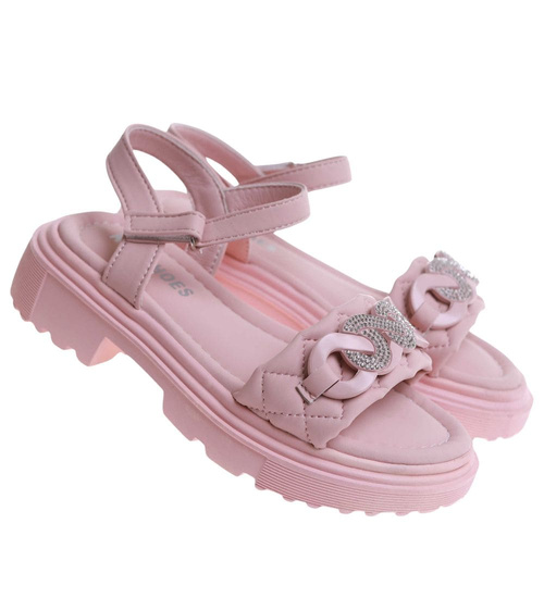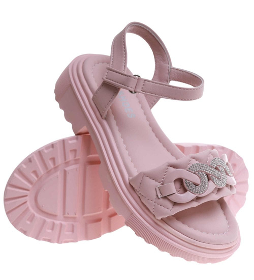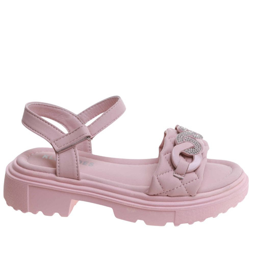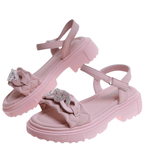 Różowe dziewczęce sandały z cyrkoniami /A3-2 17628 T296/