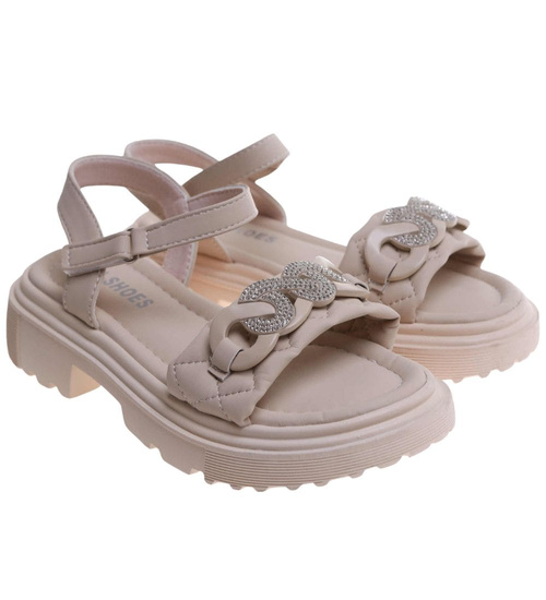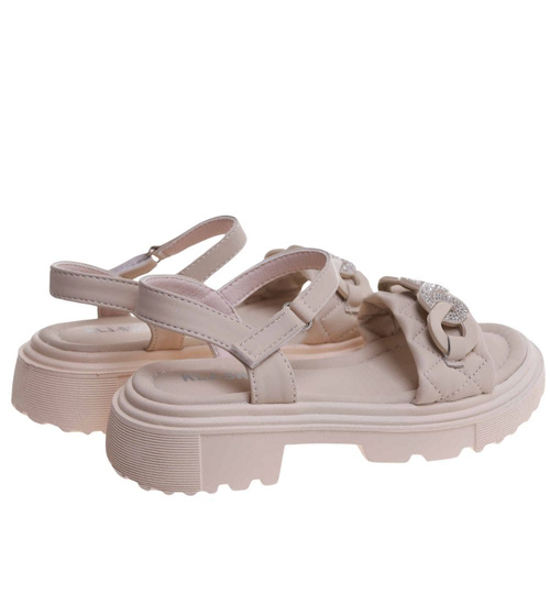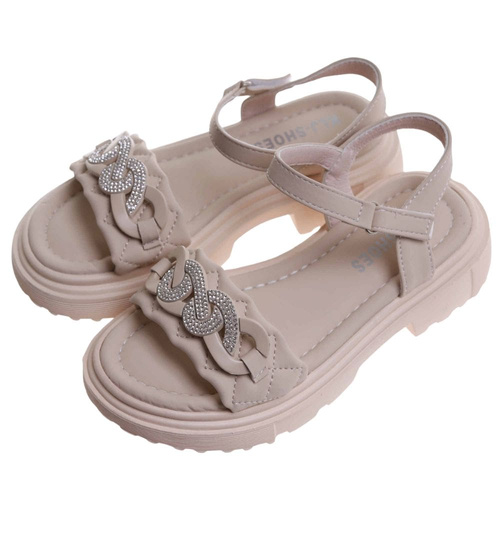 Beżowe dziewczęce sandały z cyrkoniami /B6-2 17628 T296/
