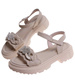 Beżowe dziewczęce sandały na rzepy z cyrkoniami – lekkie dziecięce buty na lato
