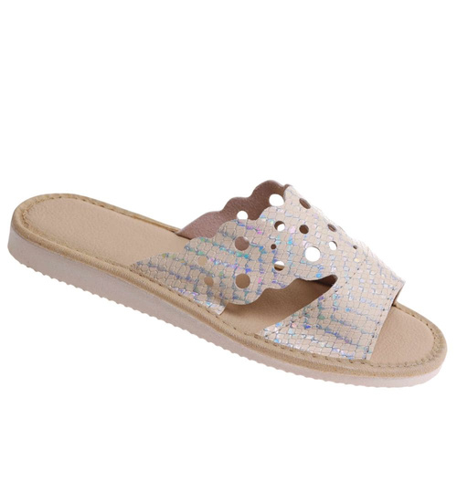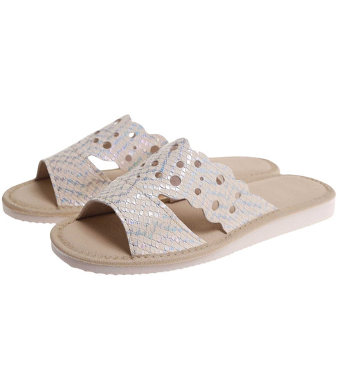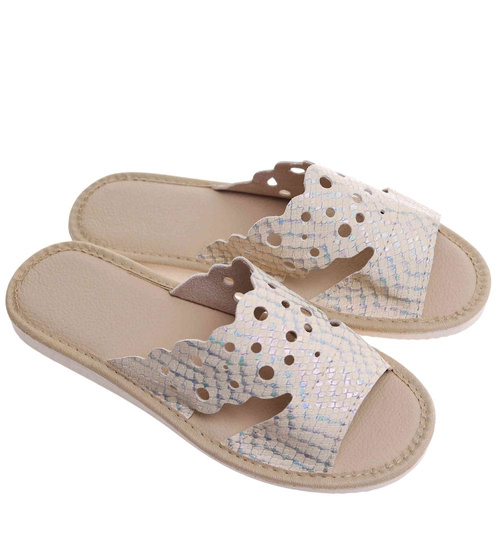 Złote ażurowe domowe klapki kapcie /G7-1 17645 S165/