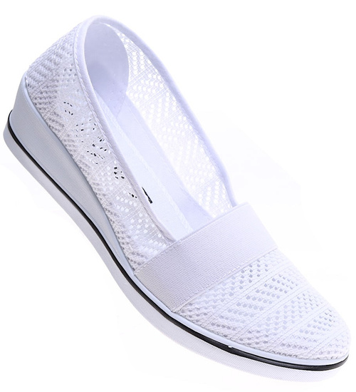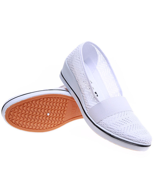 Białe koronkowe tenisówki na niskim koturnie /E3-2 15899 GF253/