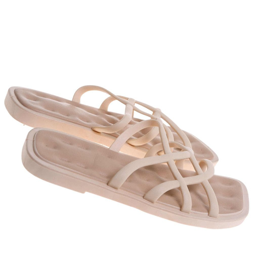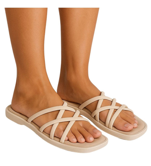 - Beżowe klapki plażowe z paseczkowym wierzchem to doskonały wybór na lato, łączący funkcjonalność z subtelnym stylem.