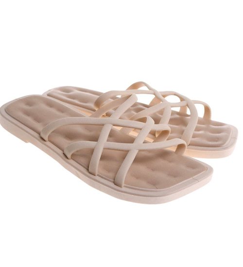 Klapki damskie plażowe wodoodporne beżowe /C2-1 17799 G089/