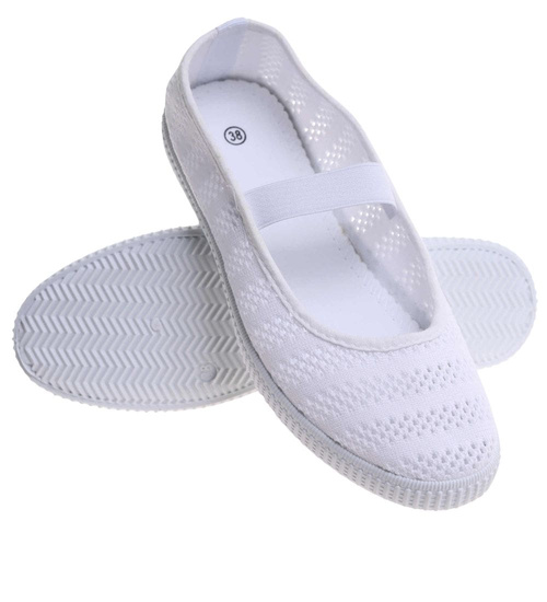 Tenisówki damskie Białe ażurowe czeszki z gumką /B4-2 17828 T295/