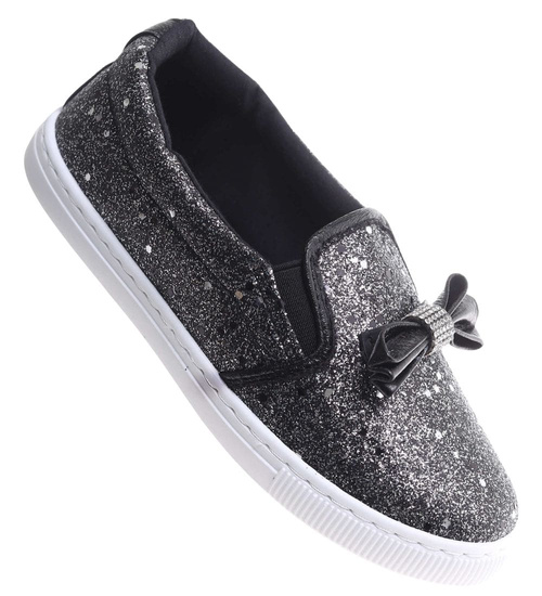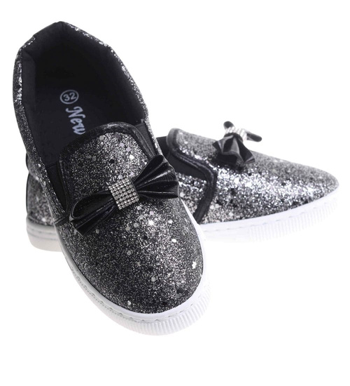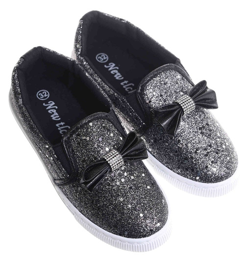 Tenisówki dziewczęce Wsuwane czarne trampki /E8-2 17829 T111/