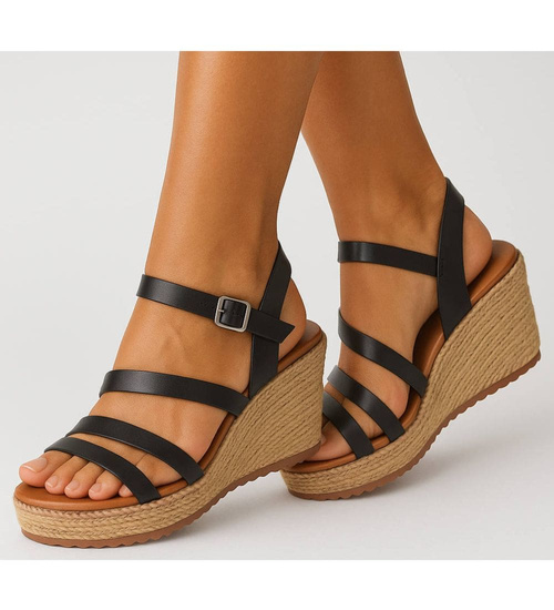 - Czarne sandały damskie na koturnie i platformie to stylowa propozycja na lato.