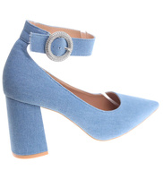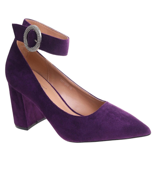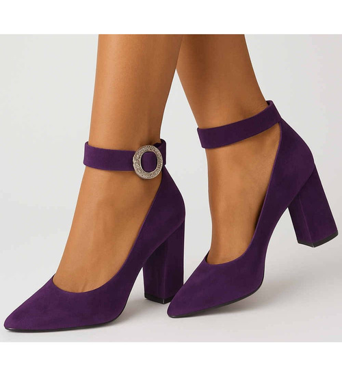 Fioletowe czółenka z paskiem na słupku /E10-3 17833 G158/