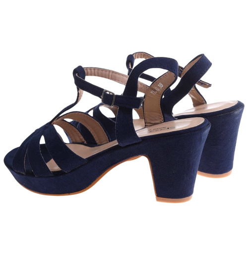 - Granatowe sandały damskie na platformie i słupku to stylowy wybór na lato, łączący modny wygląd z wygodą noszenia.
