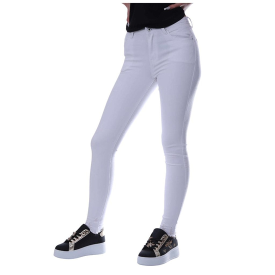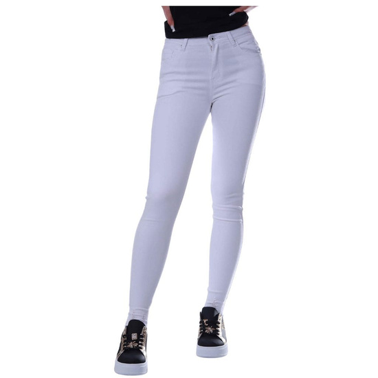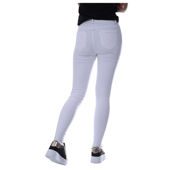 • Białe damskie spodnie wykonane z elastycznego materiału.