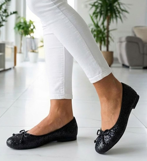 - Te czarne baleriny to idealne połączenie klasyki z subtelnym blaskiem.