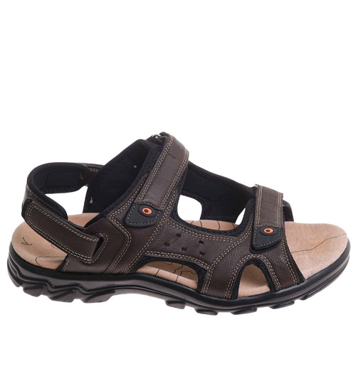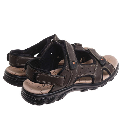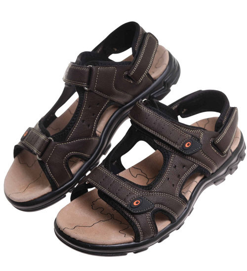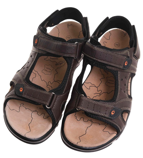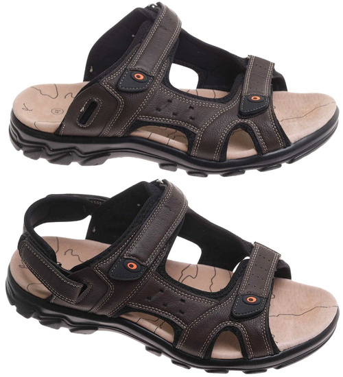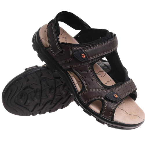 - Brązowe męskie sandały z odpinanym paskiem w praktycznym wydaniu.