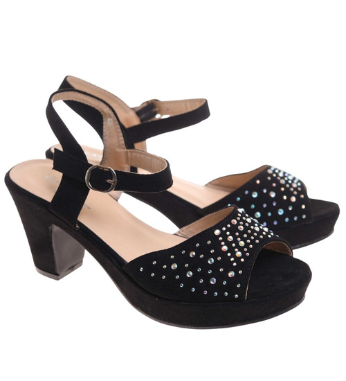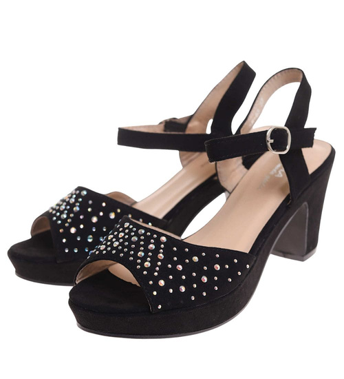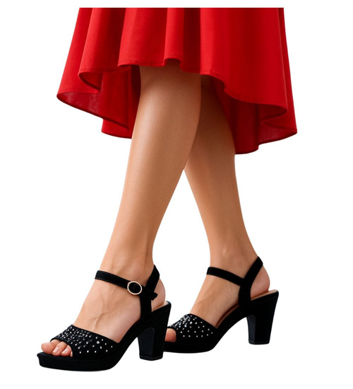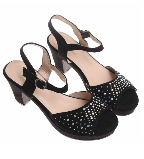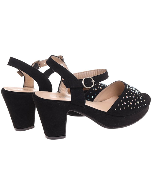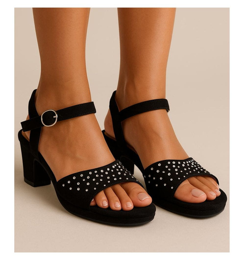 - Wykonane z delikatnego zamszu w kolorze czarnym, ozdobione błyszczącymi cyrkoniami.