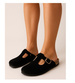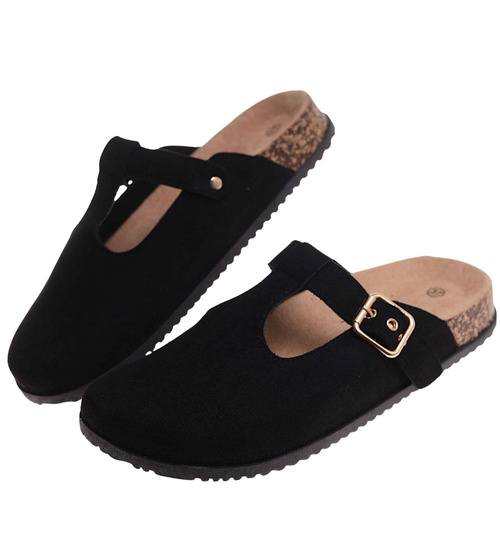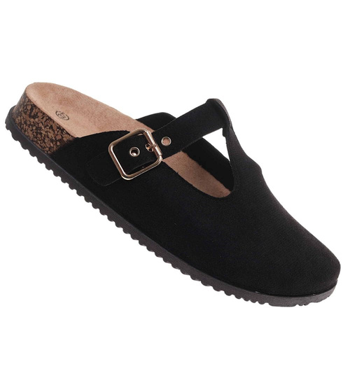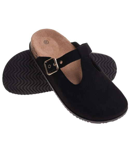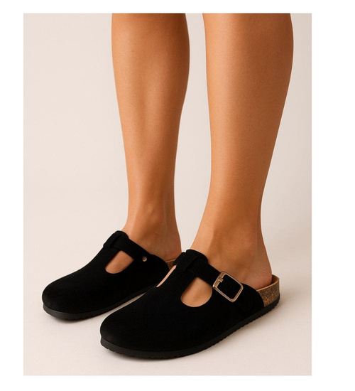 - Czarne klapki kryte damskie na lato wykonane z przyjemnego w dotyku zamszu to znakomita propozycja dla kobiet poszukujących wygody i modnego designu.