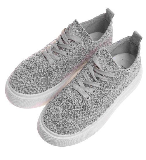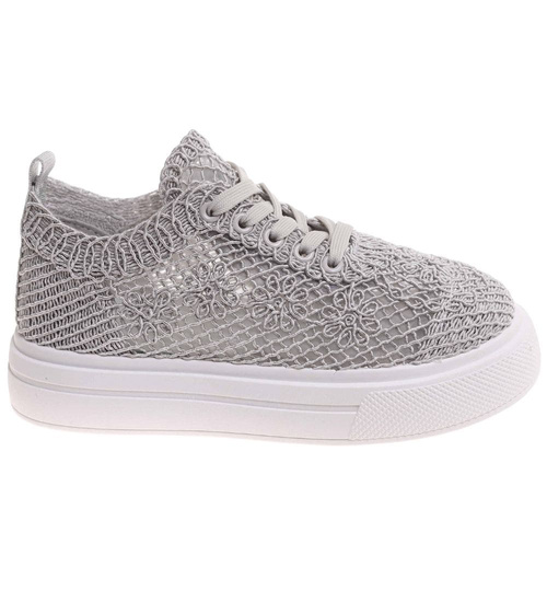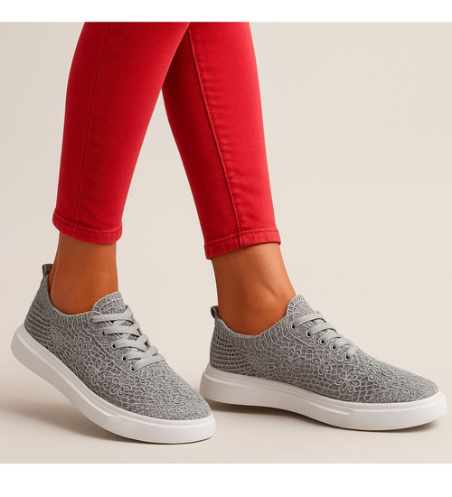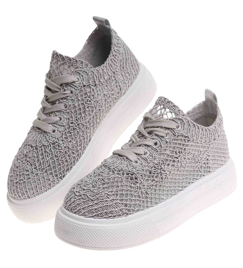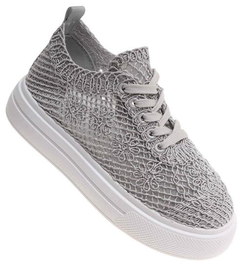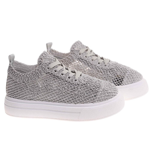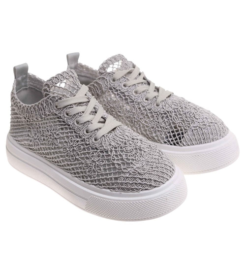 Ażurowe letnie trampki na platformie Szare /D7-2 17918 G383/