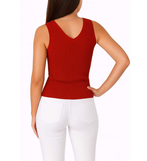 • Czerwona koszulka bez rękawów to stylowa i kobieca propozycja na ciepłe dni.
