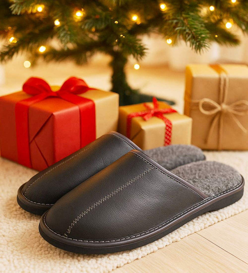 • Szare męskie kapcie z naturalnej skóry to połączenie codziennego komfortu i eleganckiego, stonowanego wyglądu.
