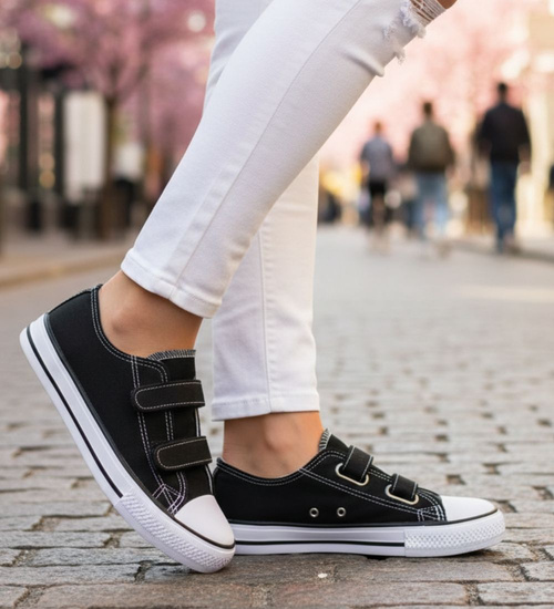 - Czarne dziewczęce tenisówki na rzepy to wygodne i stylowe buty idealne do szkoły, na podwórko czy codzienne aktywności.
