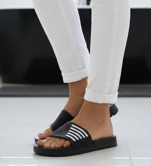 Klapki damskie na basen wodoodporne czarne ażurowe /F7-1 18638 T187/