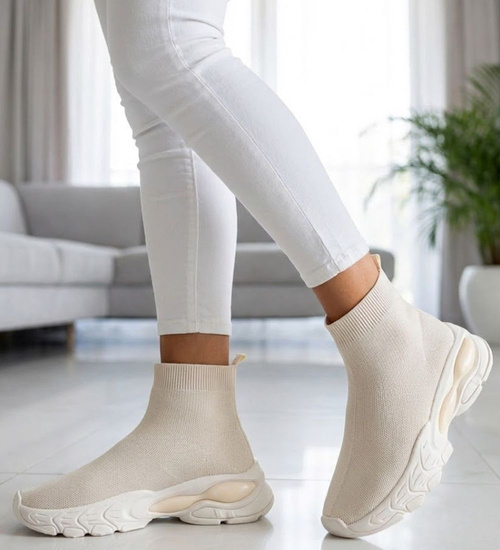 - Lekkie, wsuwane sneakersy damskie w odcieniu delikatnego beżu to połączenie komfortu i modnego wyglądu.