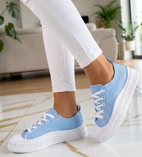 Niebieskie trampki na platformie- stylowe buty wiosenne