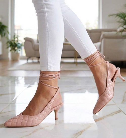 Czółenka na niskim obcasie- obuwie w stylu lace up na wyjątkowe okazje