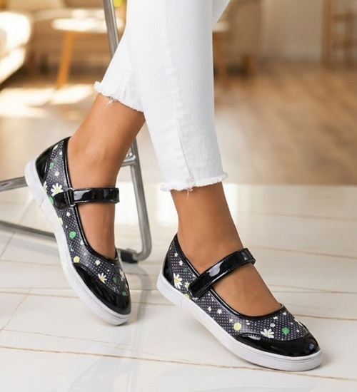 - Dziewczęce czarne baleriny z delikatnym, kwiatowym motywem to doskonały wybór na wiosenne dni.