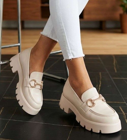 - Beżowe wsuwane mokasyny na platformie to idealne połączenie elegancji i komfortu, które świetnie sprawdzi się w codziennych stylizacjach.