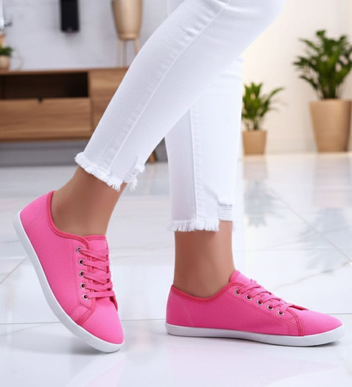 Sznurowane różowe trampki damskie /G2-2 14392 S191/