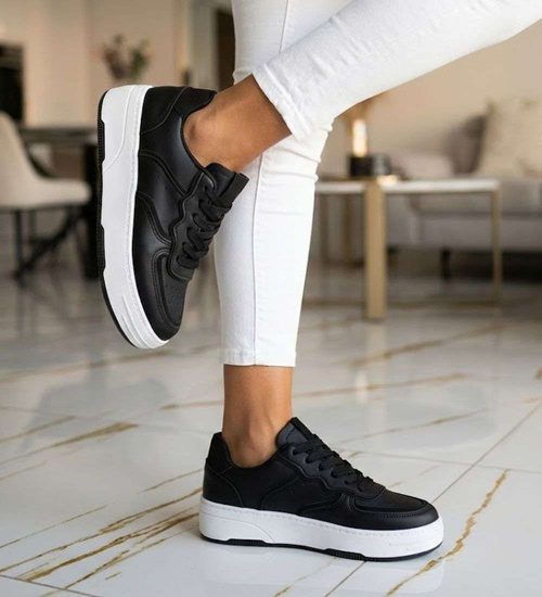 Czarne sznurowane damskie trampki na platformie /F4-2 15781 T232/